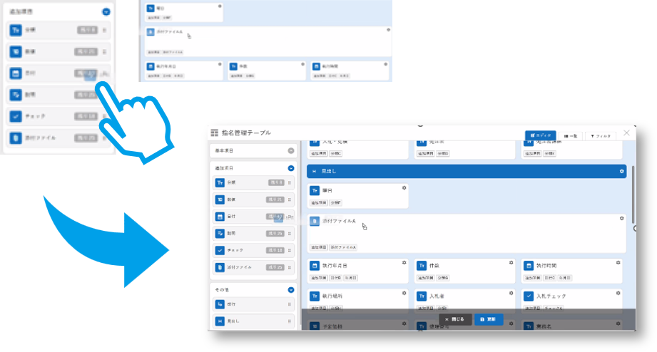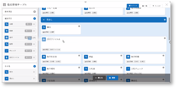 項目の入れ替えや編集もドラッグ&ドロップ等、直感的でわかりやすい操作性を実現。