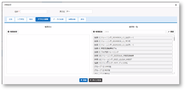テーブル(サイト)、レコード、項目のそれぞれに対し、ユーザやグループ単位で読み込み/書き込み等のアクセス制御が可能。